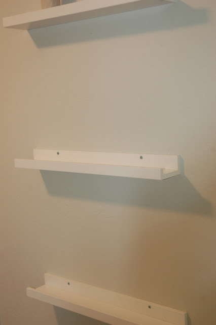 $9.99 each from here.Step 2: Deciding where to hang the ledges. I placed my ledges on a narrow wall in our loft area. These ledges are just under 22 inches long. If you have a larger wall you can place them side by side.